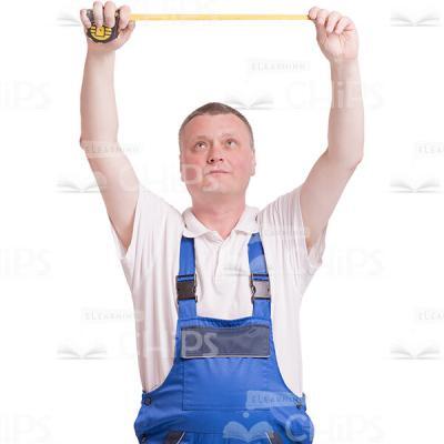 Cutout Worker Holding Measuring Tape With Raised Up Hands