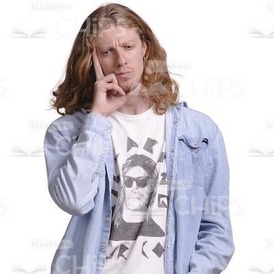 Pensive Woman Character Touches Cheek With Finger Cutout Image