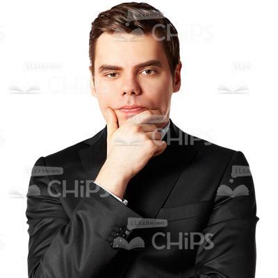 Pensive Man Talking Mobile Phone In Half-Turn Cutout
