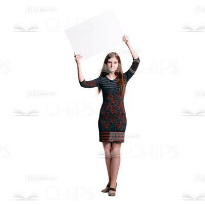 Calm Young Woman Holds Placard Above Her Head Cutout Image