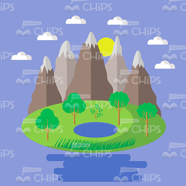 Mountain Landscape Vector Background. A well-designed vector artwork can be used to illustrate a nice mountain location. It would be a great choice for any kind of web and print related projects. Available in vector format (.eps), so it is possible to make any changes according to own requirements. Feel free to browse through our large library of specialized graphic content for e-learning and pick any item(s) you need.