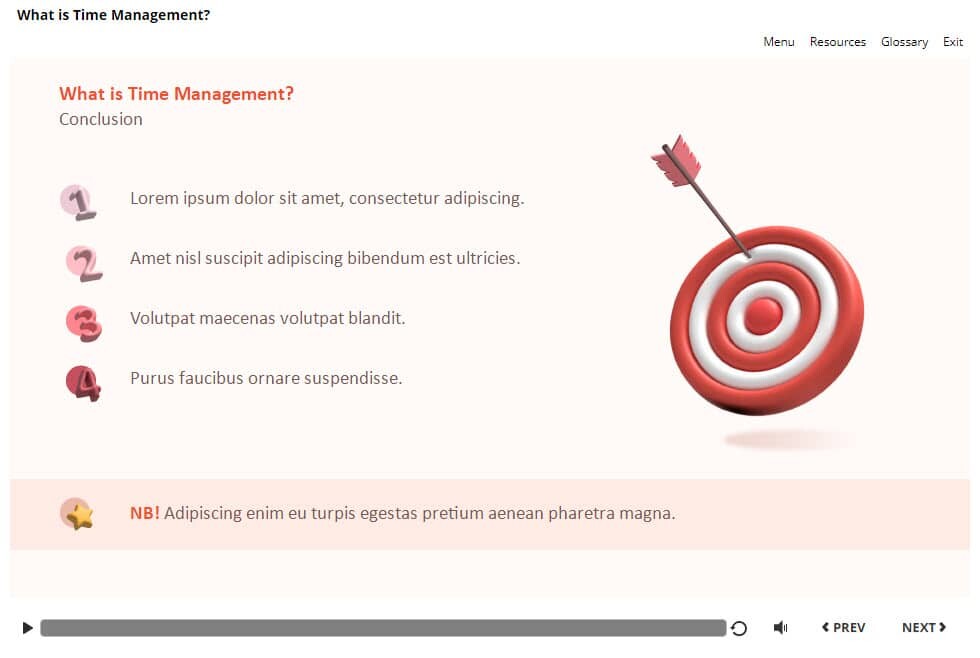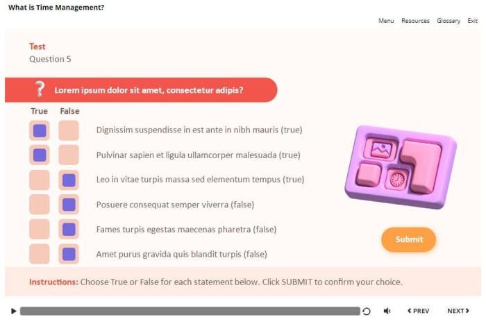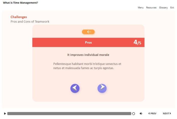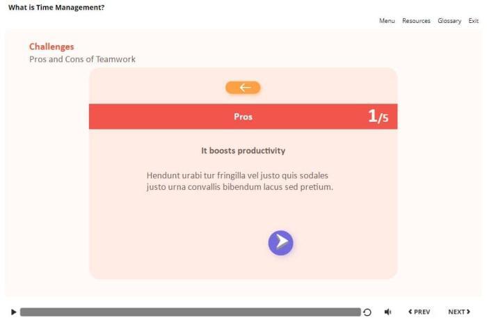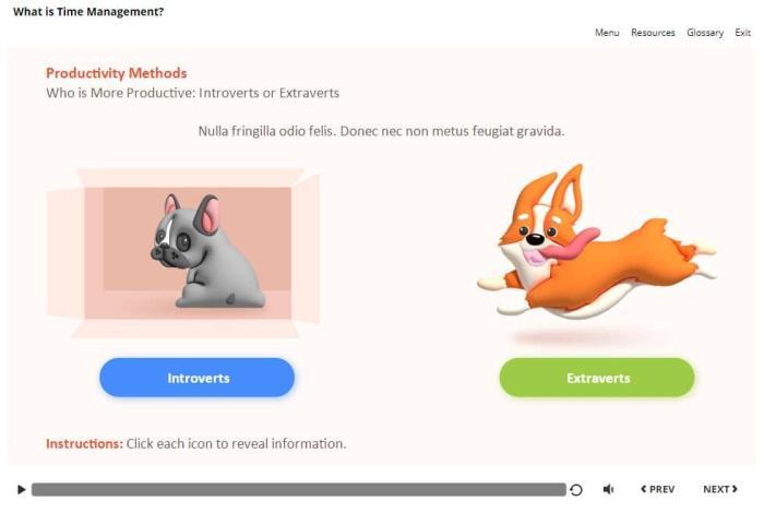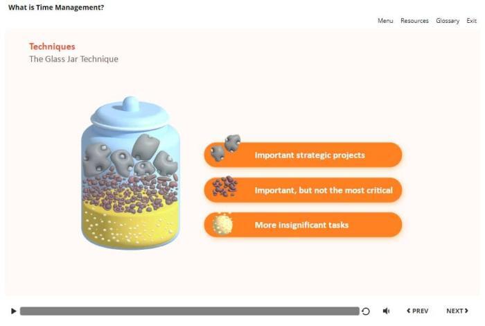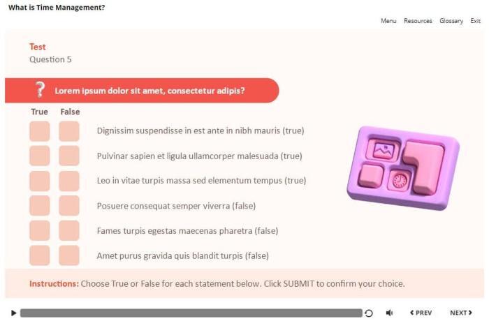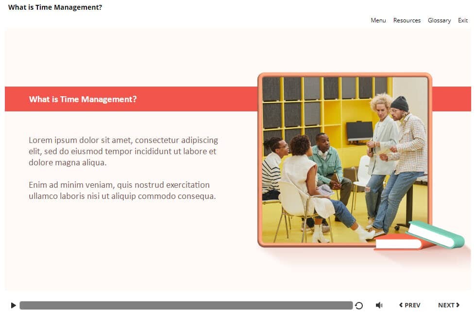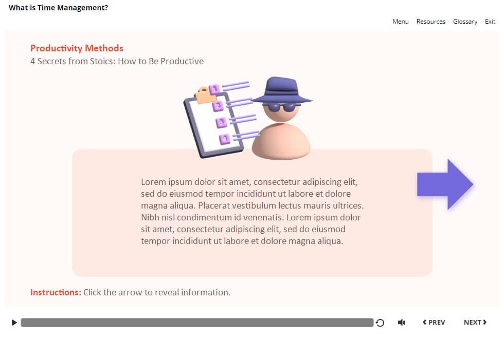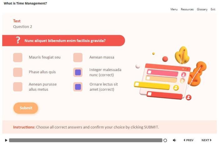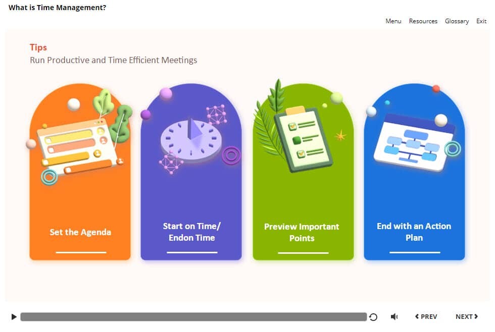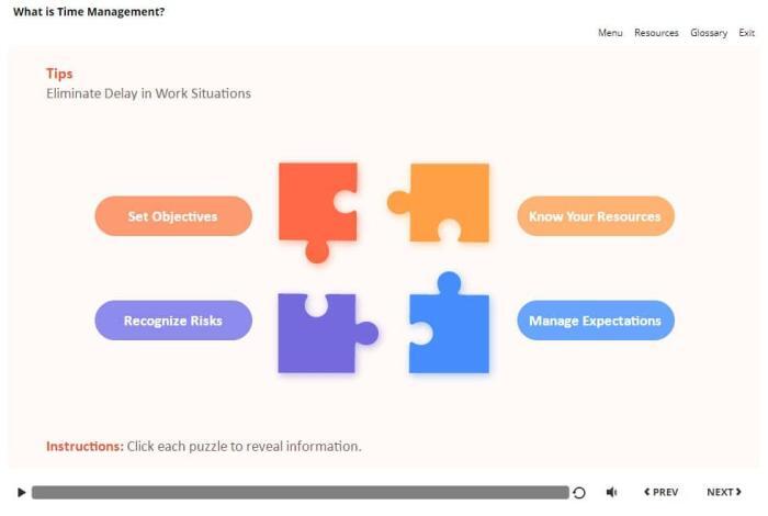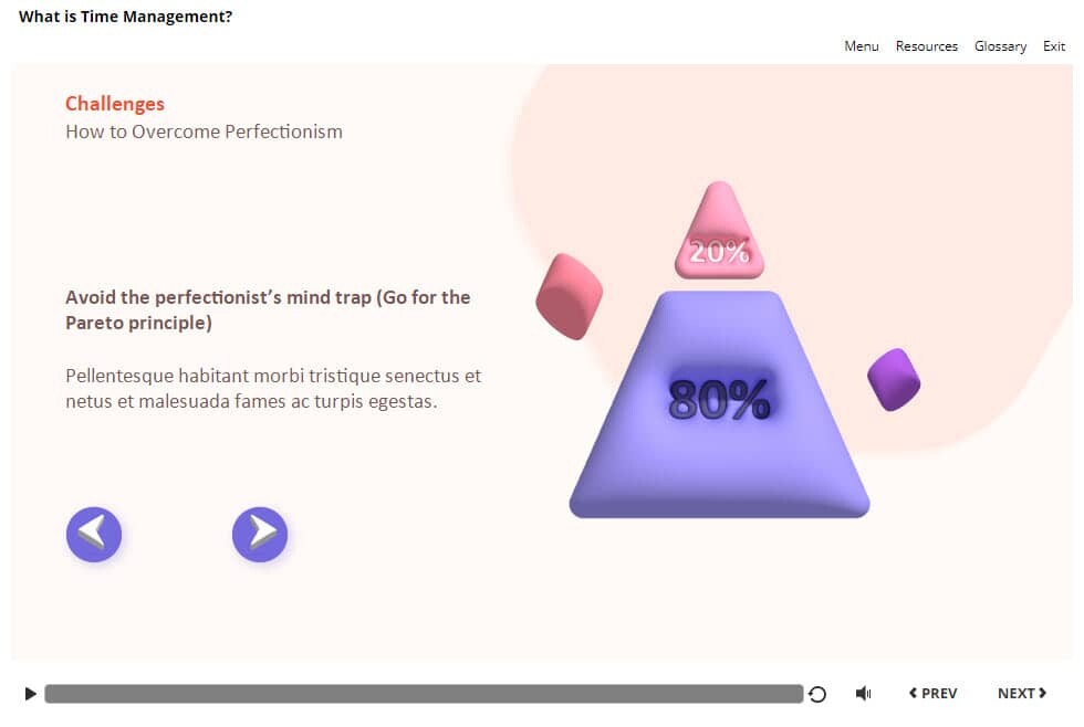 Time Management Course Starter Template — Articulate Storyline. The highly-functional elearning asset is made to earn essential time management skills of your students that enhance productivity, organizational efficiency, and effective deadline management across various professional settings. It will definitely grab learners’ attention. The template is composed of 76 layouts and interactive slides in order to help you develop your own training course and to improve the employee’s time management skills and techniques.
