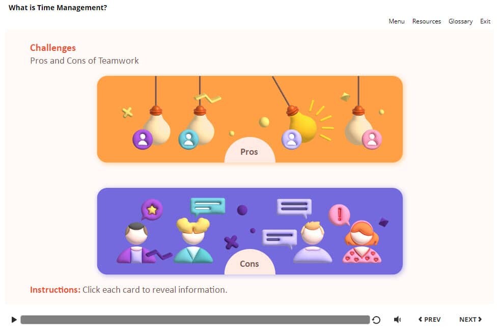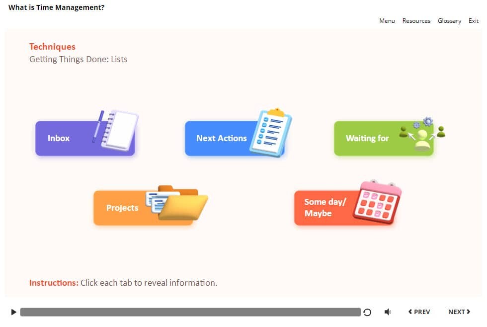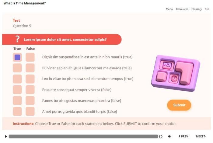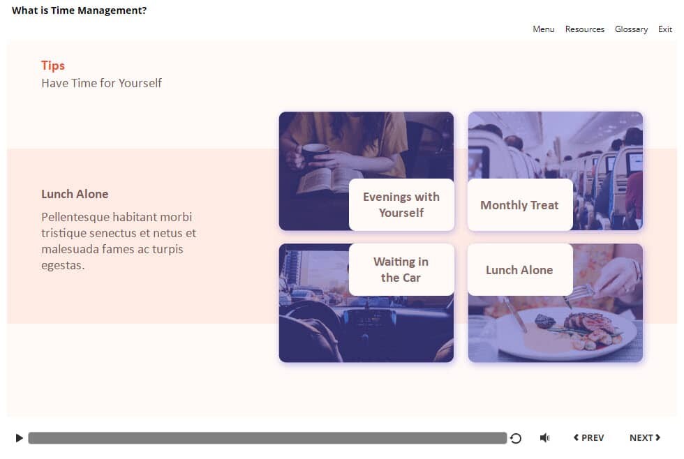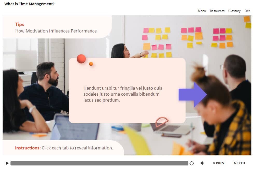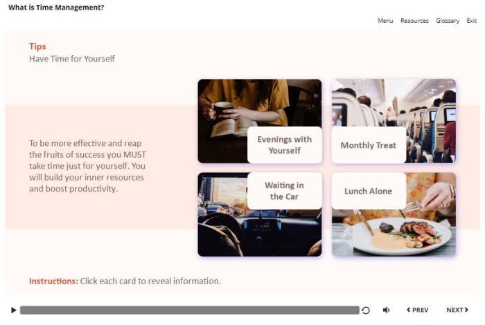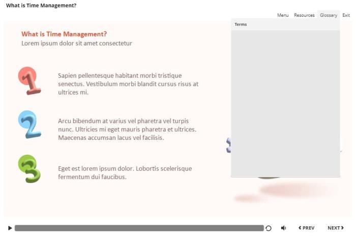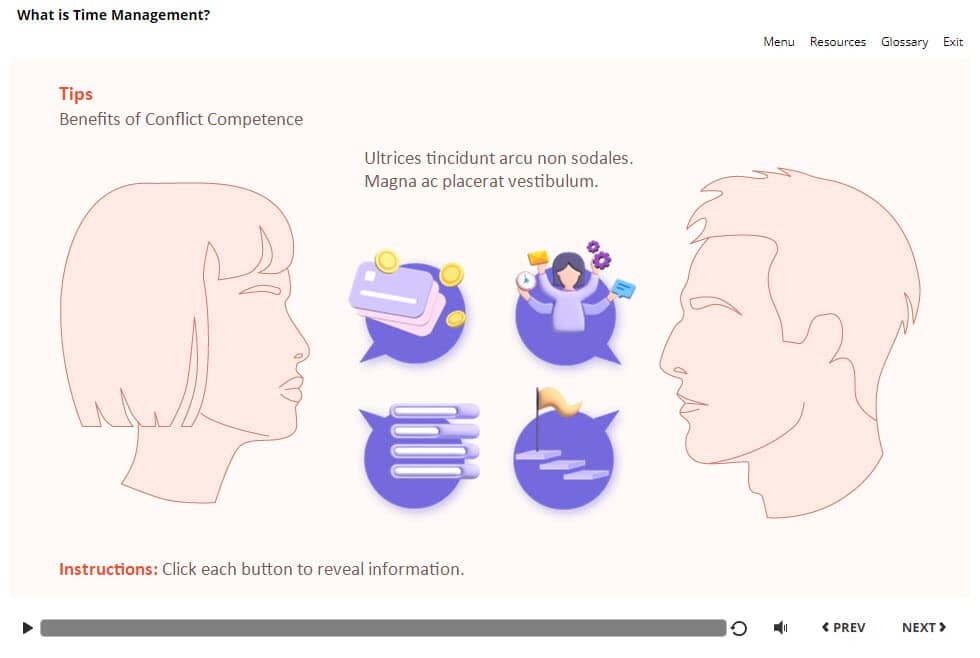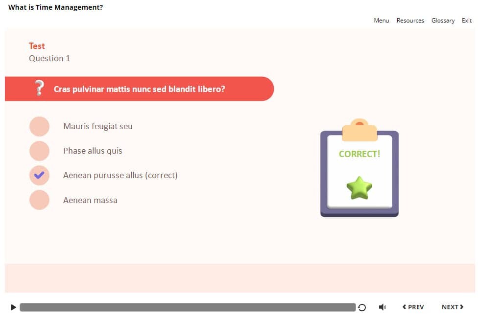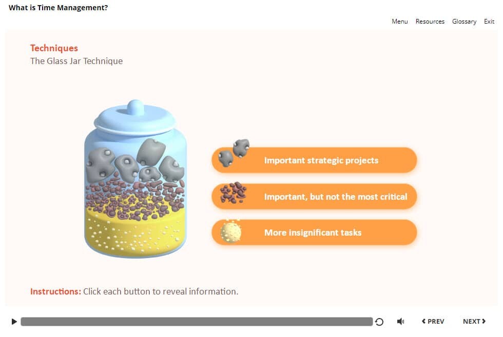 Time Management Course Starter Template — Articulate Storyline. The highly-functional elearning asset is made to earn essential time management skills of your students that enhance productivity, organizational efficiency, and effective deadline management across various professional settings. It will definitely grab learners’ attention. The template is composed of 76 layouts and interactive slides in order to help you develop your own training course and to improve the employee’s time management skills and techniques.