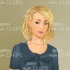 - Front: loose blonde hair, dark eyes, narrow eyebrows, bright triangular face; slim waist