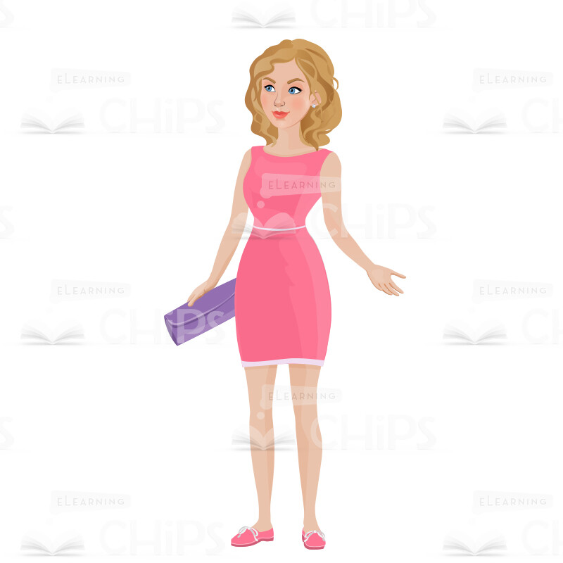 Young girl character wearing casual cloth: attractive pink dress and shoes; looks extremely nice. Her pretty blue eyes and comely cheeks will surely impress your visitors. Using Emily in presentation or in other web designed project is a good way to glamorise your work. Emily is very flexible and multi-purpose. Furthermore, she really looks great in advertising or in any other commercial project. There’s no doubt – Emily would be perfect addition to your e-learning courses.