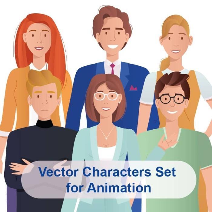 Vector Characters Set for Animation. It contains 6 different characters with packs of additional emotions, poses and hands for each of them. Each character is represented with 5 poses and 8 emotions. The set also contains 12 various hands and gadgets for each person. The vector character set would be a great choice to create animations using any suitable software. It is available in vector file format. Feel free to browse our huge vector graphics library and pick the items you need to create unique visual story.
