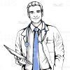- Front: attractive, smiling, nice look, short haircut, phonendoscope, notepad;