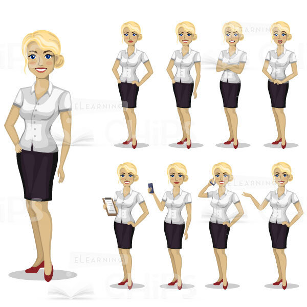 Vector Character Package contains 9 different characters which will be a great addition for e-learning projects. Each character is represented in the most demanded poses such as talking the phone, crossed arms, presenting, etc. Try to use these eye-catching characters to make your e-course much easier to grasp. Could be easily customized with other chips to create amazing e-learning projects.