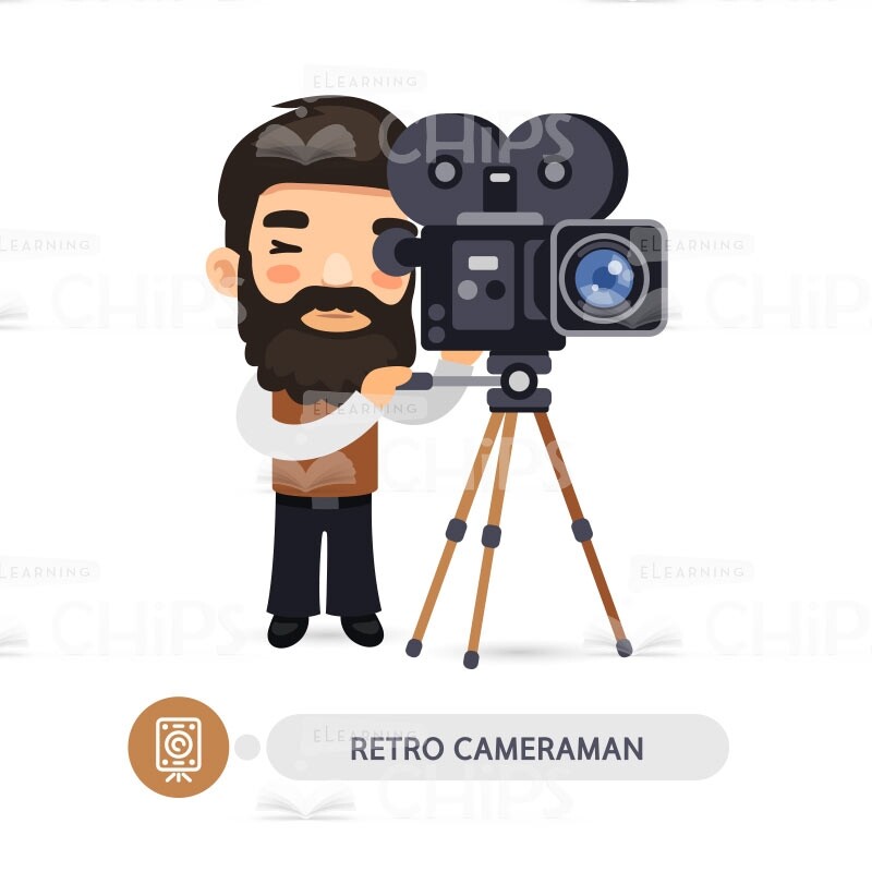 Retro Cameraman Vector Character. He’s standing straight while shooting a plot with a video camera. This handsome character can be used to create any kind of web-design project. It’s available in raster (.PNG) and vector (.EPS) formats. It’s possible to make any changes according to the features of vector file format.