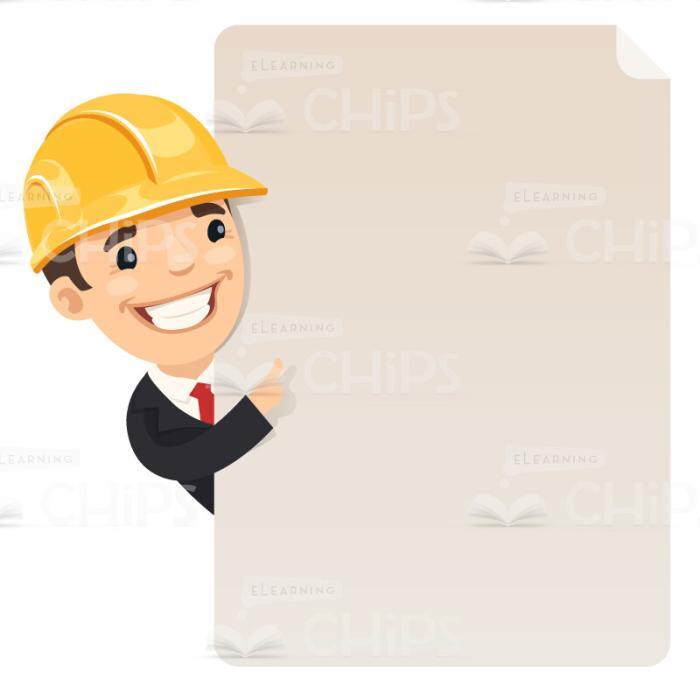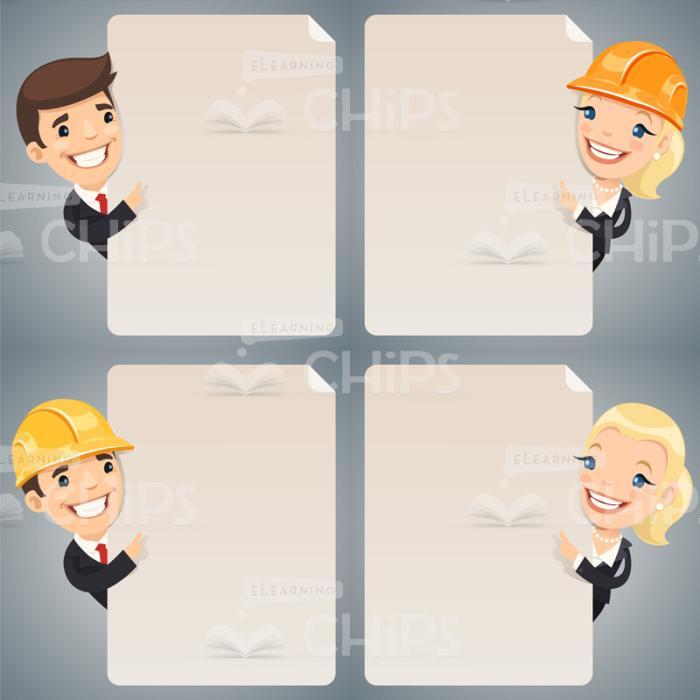Cheerful Business People With Empty Blanks Vector Character Set. Consists of 4 characters which could be used to illustrate young engineers or constructors. They are in good demand among e-course developers. Try to use these highly professionally designed characters for creating your own elearning projects.