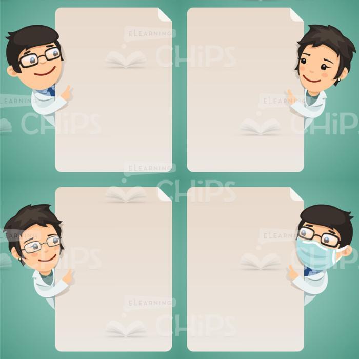 Doctors With Empty Blanks Vector Character Set. Consists of 4 characters which could be used to illustrate hospital employees. They are in good demand among e-course developers. Try to use these highly professionally designed characters for creating your own elearning projects.