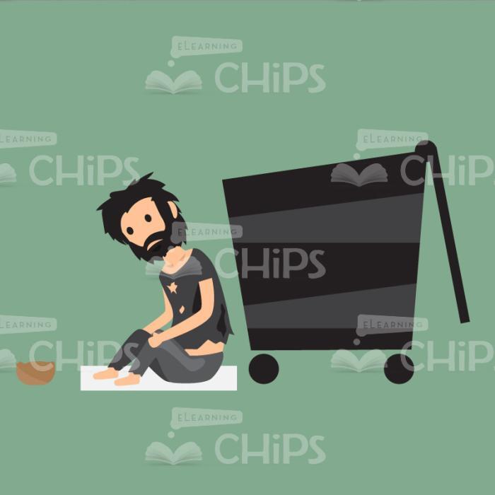 Homeless People Vector Infographics. It is an excellent illustration of how a person may become homeless and the difficulties await him. Would be a perfect addition for web and print related projects such as elearning courses, presentations, promotions, etc. It is available in two formats: vector (.EPS) and raster (.PNG). Feel free to choose the right format that fully fits your needs. Keep in mind that it is possible to resize and modify the vector one according to your requirements.
