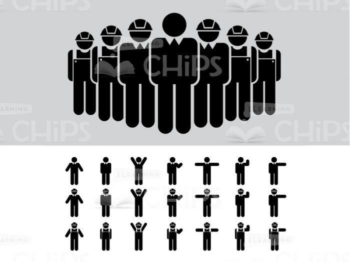 Men Icons + Characters. The set consist of creative graphic icons and characters. Icon block has several positions that surely cover any situation. Moreover, you can use any of the characters presented to make work more descriptive. Would be an ideal option to present you own web-designed project. According to multi-purpose categorization could be used numerous projects of all kinds, preferably in e-learning sphere. Due to vector shape all icons are completely resizeable.