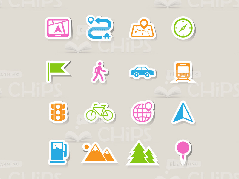 Destination Icon Set. The block includes powerful and colourful vector icons grouped according to thematic orientation. Due to vector shape all of them are completely resizeable. You may add any colour, specify the required size or just leave it as it is. It would be perfect addition to any kind of web-designed project.