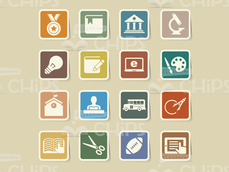 Colourful Icons: Various Objects Set. In this block you’ll find powerful vector icons which would be an ideal option for creating an effective e-learning courses. All icons are grouped in set accordingly thematic orientation. Each item is carefully traced and will surely make distance learning more comprehensible. Add this set to your shopping cart and start making your own project right now.