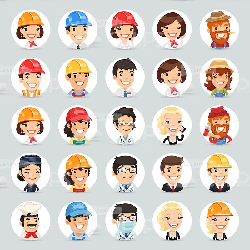 Young Professionals Vector Icon Set. It consists of 25 characters of different professions. This icons would be a perfect addition to any kind of web-design project. Particularly useful for creating e-courses, promotions and advertisements.