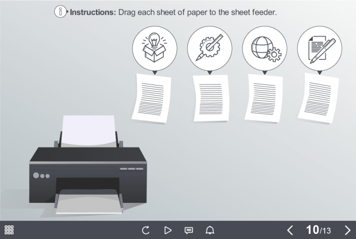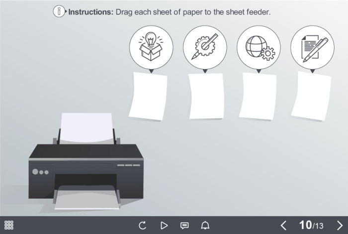 Storyline Printing Documents Template is a ready-to-use template based on Articulate Storyline 2 software. It contains four draggable objects designed as blank sheets of paper. The user must drag each of them to the printer’s sheet feeder to reveal the additional information in popups. This template allows you to present the course information in a creative way. It would be an excellent addition for your own elearning project. The interaction can be built into any storyline course player. Perfectly runs on both PC and tablet.
