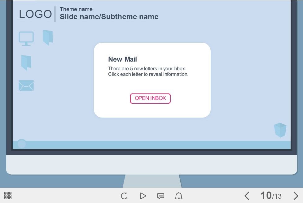 Five Steps — Storyline Template is an unique eLearning interaction designed with Articulate Storyline 2 software. It is composed of five buttons invented to reveal the learning materials. The user must click on each step to learn the necessary information. The template is fully compatible with the most recent versions of Articulate Storyline – 3 and 360. It’s a ready-made product that works perfectly on both PC and tablet. We recommend to lauch it on the devices with the screen size is more than 7 inches. Feel free to browse our Articulate Storyline templates library and choose any items that help you to create amazing e-Courses!