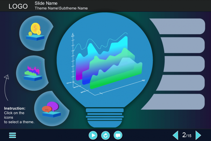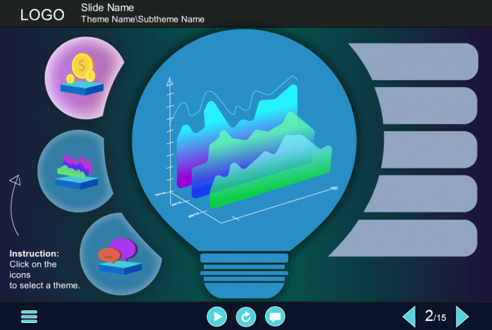 Two-level Tabs — Storyline Template. The template is designed with Articulate Storyline 2. It is fully compatible with Storyline 3 / 360 versions. The slide caontains 15 tabs invented to reveal the learning materials. This Storyline interaction would be a great choice to create amazing eLearning courses. All you need is to insert the slide into your project and to fill it with own training content. We’ve collected hundreds of Articulate Storyline templates which would become great helpers for eCourse developers.