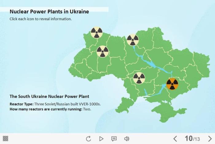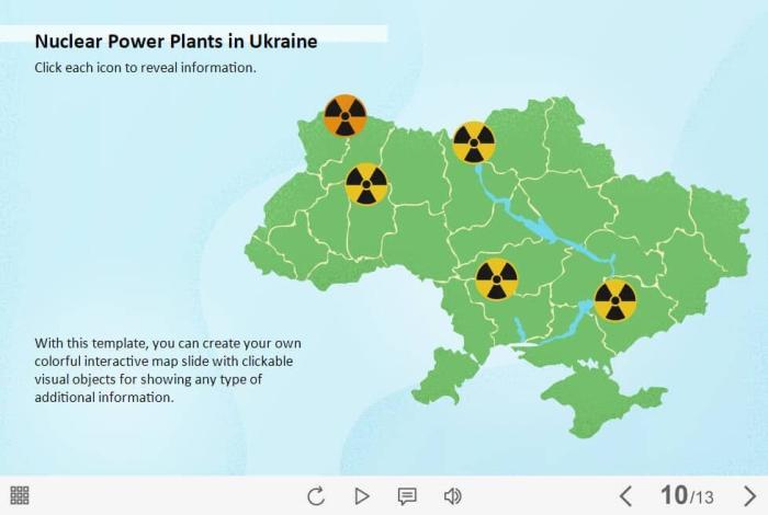 Nuclear Power Plants Markers — Storyline 3 / 360 Template. The eLearning interaction slide would become a great addition for your eCourse. It contains five clickable markers designed as radioactive environment symbols. The user must click on each of them to reveal the additional information. The template is compatible with Storyline 3 / 360 software. All you need is just to paste the template into your project and to fill it with own learning materials. Try to create better courses with our amazing Articulate Storyline templates!