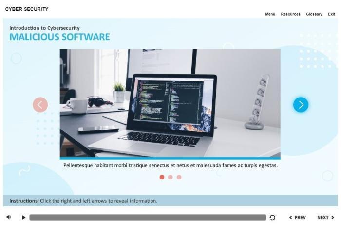 Light-blue Slideshow — Storyline Template. The unique eLearning interaction is designed with Articulate Storyline 2 software. It is fully compatible with the most recent versions: Storyline 3 and 360. The template represents a classic slideshow that is composed of 3 slides. The user must click on the left and right arrows to reveal the additional materials. The template slide is a ready-made product: all you need is to insert it into the projects and fill with own training content. We recommend to launch it on the devices with the screen size more than 7 inches. We’ve collected lots of Articulate Storyline templates to speed up the course development and to save you from routine work.