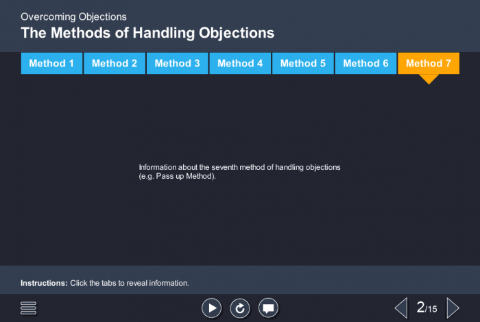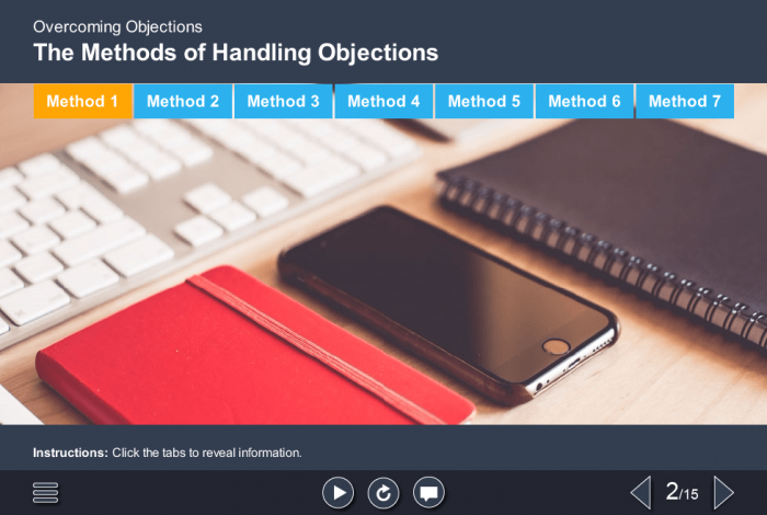 Blue Tabs — Storyline Template. It contains 7 clickable clickable tabs invented to reveal the learning materials. The template is based on Articulate Storyline 2 software and is fully compatible with the Articulate Storyline 3 and 360 versions. It would be a great helper to create your own eLearning course. Perfectly runs on both PC and Tablet with screen larger than 7 inches. We’ve collected a huge variety of Storyline Templates especially for elearning developers. Just browse through our templates library and pick any item(s) you need to create a fascinating visual story.