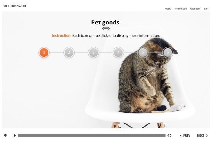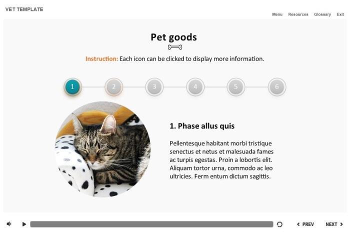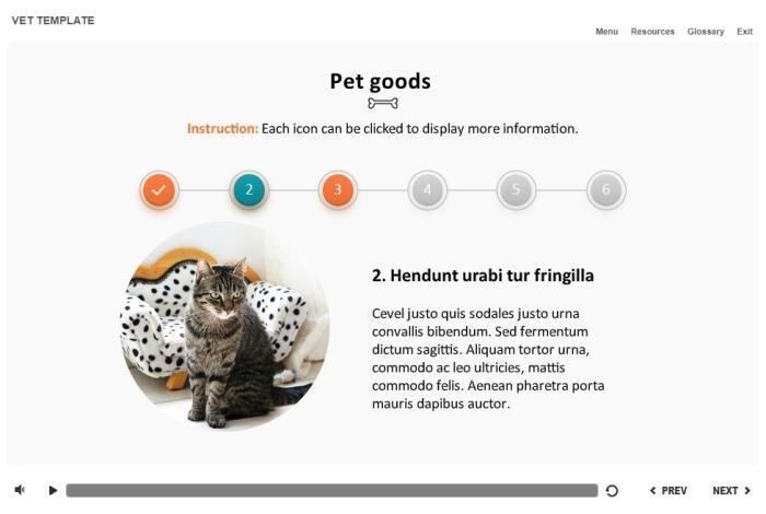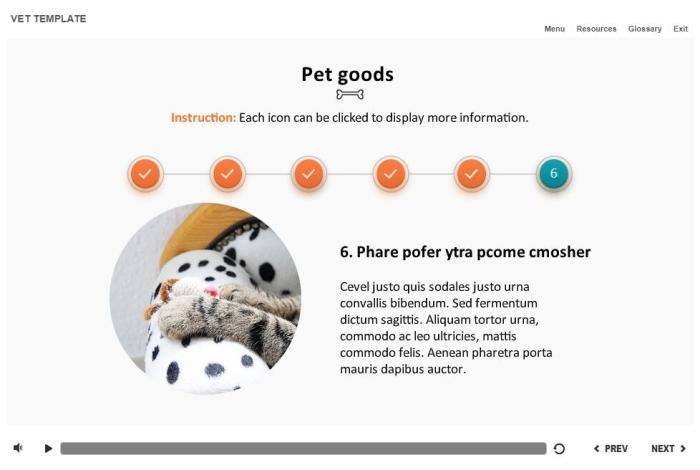 Numeric Tabs — Storyline Template. The unique eLearning interaction is designed with Articulate Storyline 2 software. It is fully compatible with the most recent versions: Storyline 3 and 360. The template contains 6 numeric tabs placed at the top part of the screen. The user must click on each tab to reveal the additional materials. The interactive slide is a ready-made product: all you need is to insert it into the projects and fill with own training content. We recommend to launch it on the devices with the screen size more than 7 inches. We’ve collected lots of Articulate Storyline templates to speed up the course development and to save you from routine work.