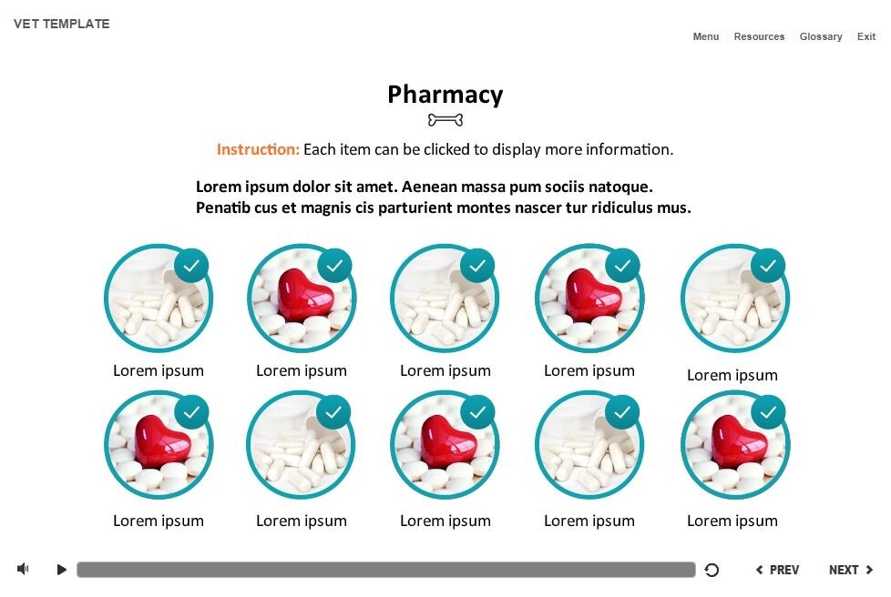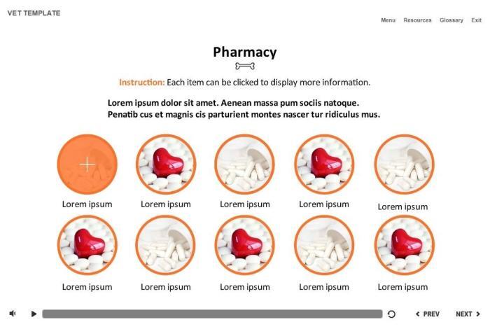 Grid Round Images — Storyline Template. The unique eLearning interaction is designed with Articulate Storyline 2 software. It is fully compatible with the most recent versions: Storyline 3 and 360. The template contains 10 clickable images. The user must click on each image to reveal the additional materials in pop-ups. The interactive slide is a ready-made product: all you need is to insert it into the projects and fill with own training content. We recommend to launch it on the devices with the screen size more than 7 inches. We’ve collected lots of Articulate Storyline templates to speed up the course development and to save you from routine work.