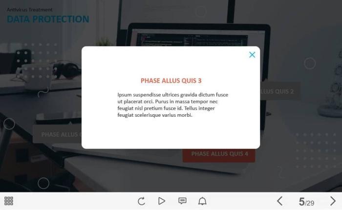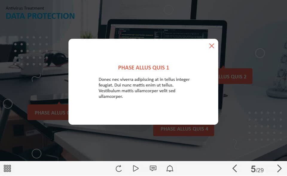 Clickable Callouts — Captivate Template. The unique eLearning interaction is designed with Captivate 2019 software. The template contains four clickable callouts placed over the image. The user must click on them to reveal the additional information in pop-ups. The template slide is a ready-made product: all you need is to insert it into the projects and fill with own training content. We recommend to launch it on the devices with the screen size more than 7 inches. We’ve collected lots of Adobe Captivate templates to speed up the course development and to save you from routine work.
