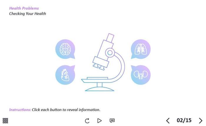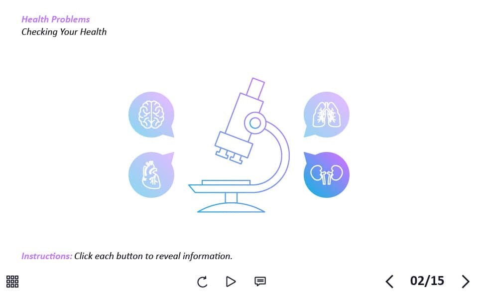 Clickable Bubbles with Icons — Captivate Template. The unique eLearning interaction is designed with Adobe Captivate 2019 software. The template contains 4 clickable bubbles with icons inside. The user must click each of them to reveal the additional materials in pop-up windows. The template is a ready-made product: all you need is to insert it into the projects and fill with own training content. It’s recommended to launch it on the devices with the screen size more than 7 inches.