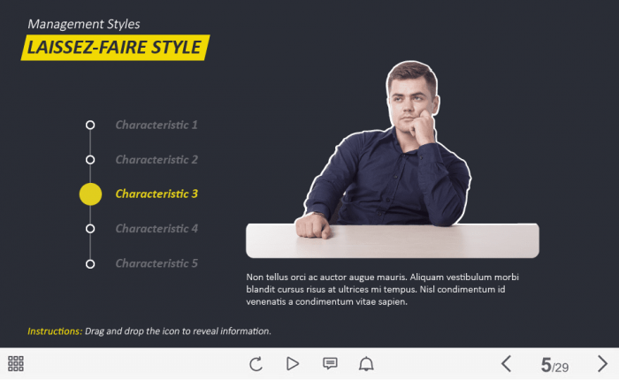 Vertical Slider — Captivate Template. The unique eLearning interaction is designed with Captivate 2019 software. The template contains vertical slider with 5 positions that is placed on the left part of the screen. The user must drag the slider down to reveal the additional materials. The template slide is a ready-made product: all you need is to insert it into the projects and fill with own training content. It’s recommended to launch it on the devices with the screen size more than 7 inches.