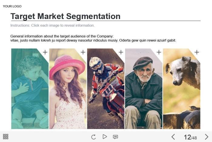 Clickable Images — Captivate Template. The ready-made eLearning template is designed with Adobe Captivate 9 and is fully compatible with the most recent versions: Captivate 2017 and 2019. It contains 5 clickable images. The user must click on them to reveal the learning materials in pop-ups. The template would be a great choice to create an astonishing e-course. All you need is just to insert the slide into the project and to fill it with your eLearning content.