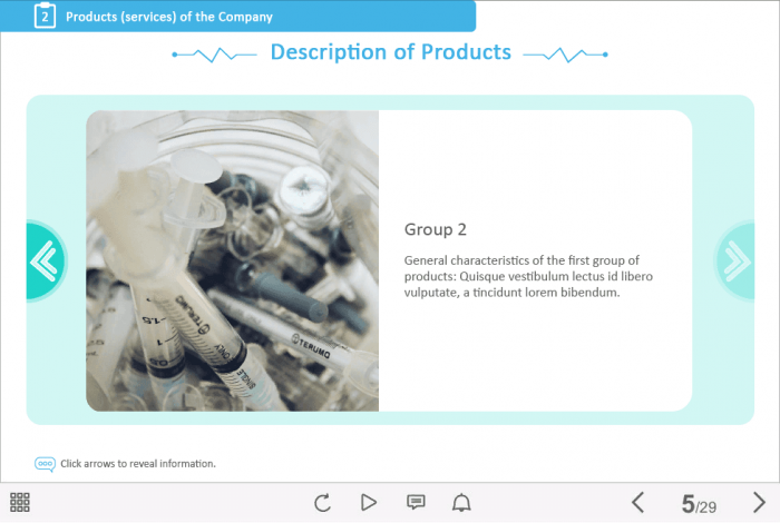 Captivate Slideshow Template. This ready-made interactive slide would be a great choice for creating e-courses on medical and healthcare themes. It is composed of 5 slides with text and graphics training materials. The user must click on left and right buttons to switch between them. The template is based on Adobe Captivate 9 software. We’ve collected lots of Captivate Templates that correspond to needs of different industries. Now it’s even easier to create an e-learning course from scratch: just select the course template you like and fill it with any number of powerful and attractive interactions!