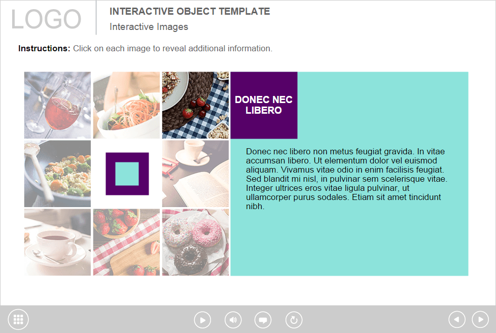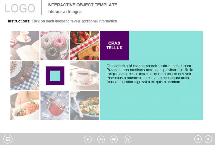 Lectora Cafe Collage Template. Lectora Template based on Lectora Publisher 16. Designed for showing any type of information in tabs. Consist of 8 interactive buttons, intended to reveal additional info. Perfectly runs on both Tablet and PC. Could be easily added to any type of Lectora Publisher Player Skins to create an effective elearning courses. It’s already designed and prepared for usage.
