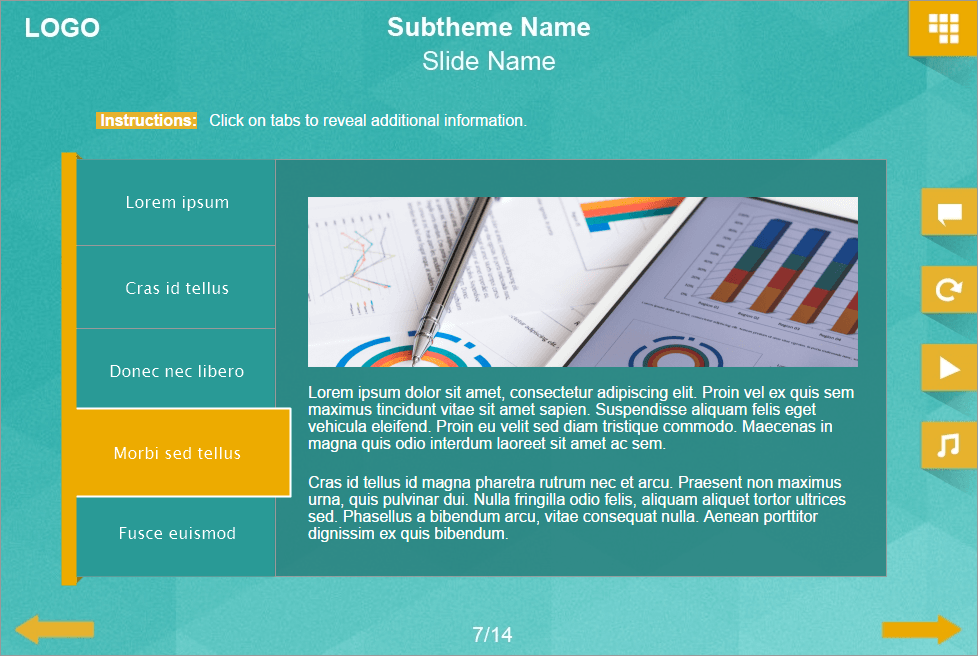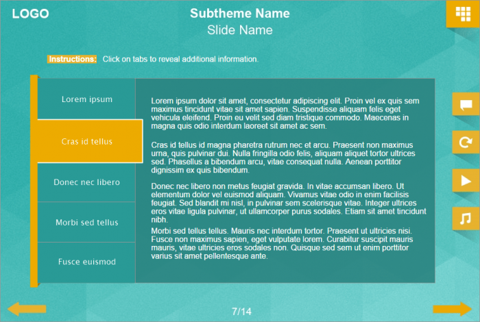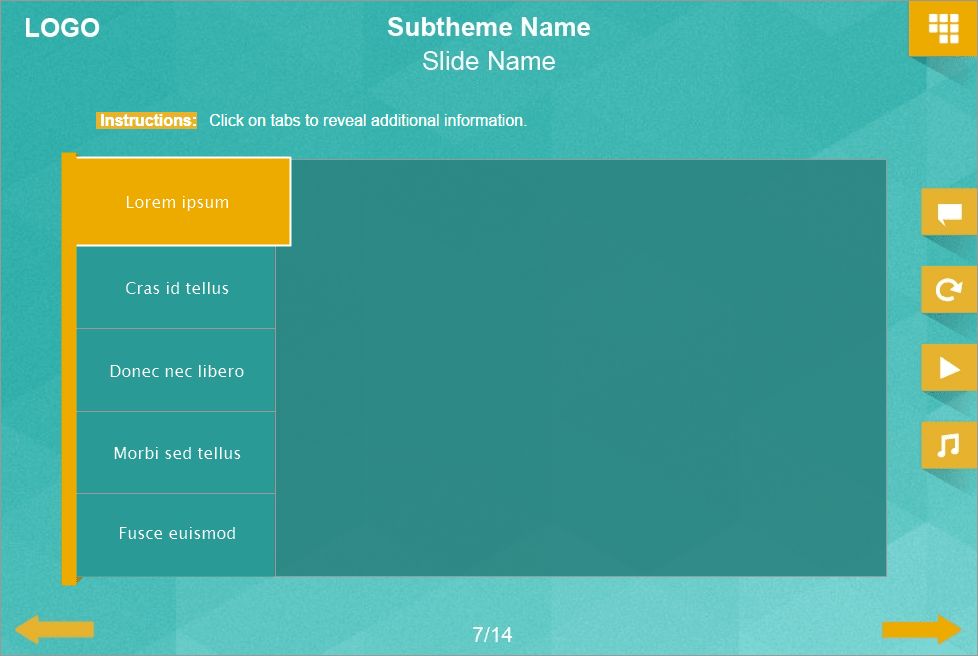 Vertical Tabs With Turquoise Fond — Lectora Template
