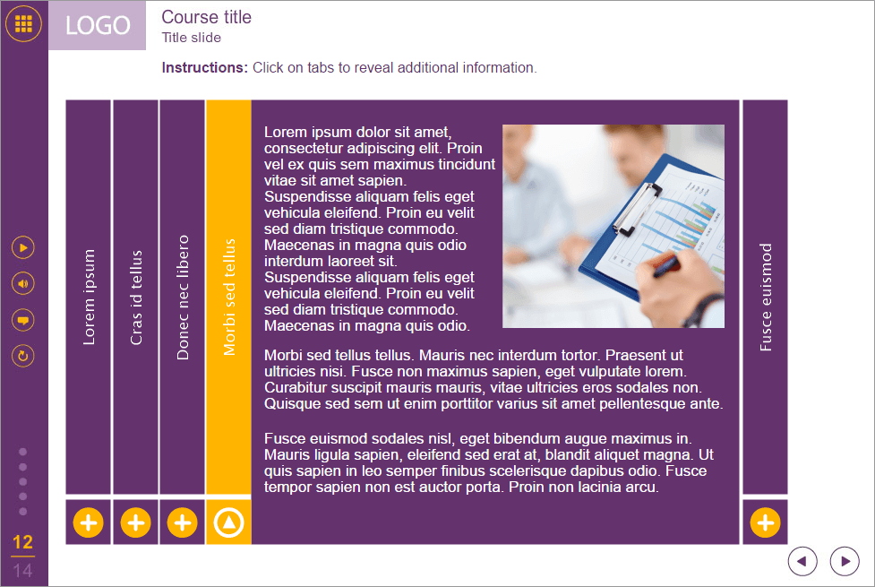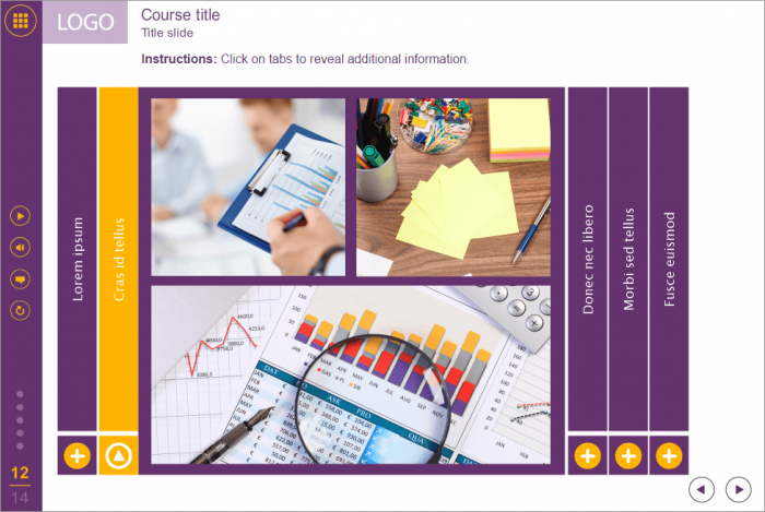 Lectora Templates help to create elearning courses faster and easier. Ready-made interactions allow you to focus more on e-course content than on the creation of a fully workable environment.