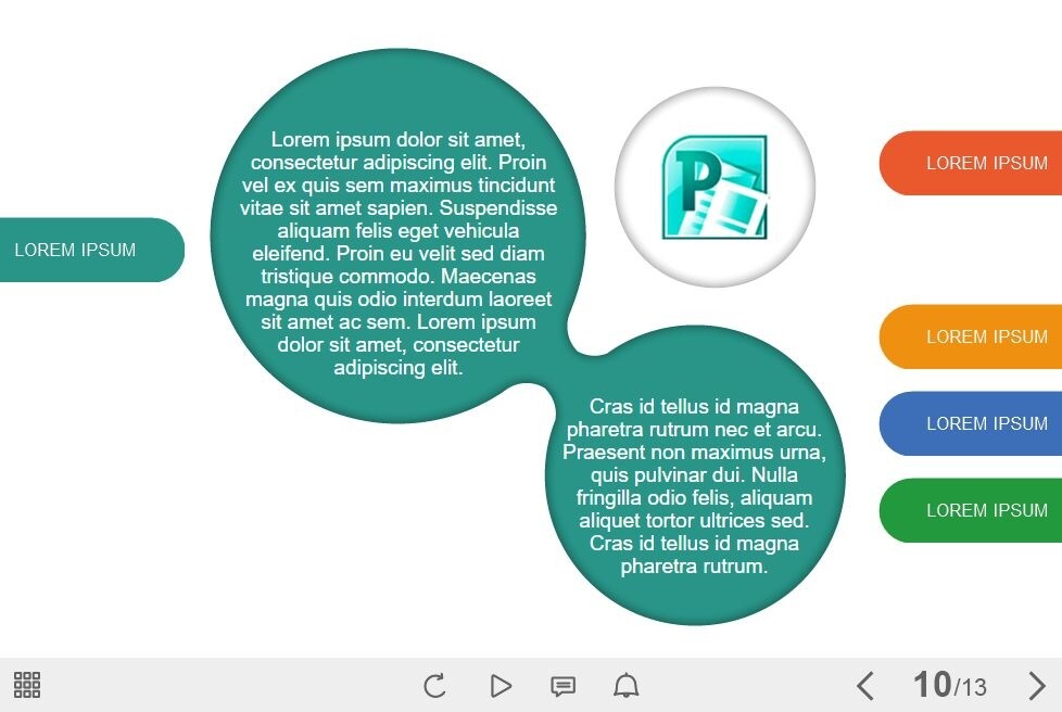 Right-side Colorful Tabs — Lectora Template. The well-designed interaction slide is composed of five colorful stickers placed at the right part of the screen. The user must click on each to reveal the additional information about the classic office software tools. The template is a ready-made product: all you need to do is to insert the slide into your project and to add own learning materials to it. Being developed with Lectora Publisher 16, this interactive slide is fully compatible with the most recent versions of Lectora Inspire / Publisher tools. It launches well on both PCs and tablets.