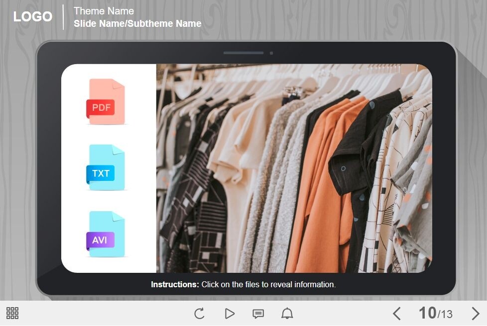 Clicking on Files — Lectora Template is an unique eLearning interaction designed with Lectora Publisher 16 software. It contains three icons of files placed at the left part of the screen. The user must click on each file to reveal the learning materials. The template is fully compatible with any Lectora Publisher 16 course player. It’s a ready-made product that works perfectly on both PC and tablet. We recommend to lauch it on the devices with the screen size is more than 7 inches. Feel free to browse our Trivantis Lectora templates library and choose any items that help you to create amazing e-Courses!