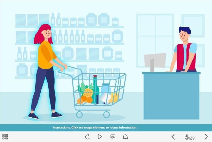 Supermarket Customer and Cashier — Lectora Template