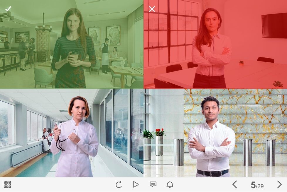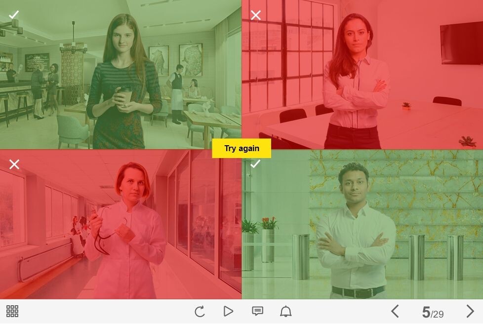 Grid Character`s Quiz — Lectora Template. The template is designed with Lectora Publisher 16 tool. It is fully compatible with the most recent Lectora Publisher / Inspire versions. The slide is composed of 4 grid images with handsome characters. Each grid image contains a single choice with 1 correct answer option and three incorrects. The user must give the correct answers to all the questions to complete the quiz. This Trivantis Lectora interaction would be a great choice to create amazing eLearning courses. All you need is to insert the slide into your project and to fill it with own training content. We’ve collected hundreds of Lectora Publisher / Inspire templates which would become great helpers for eCourse developers.