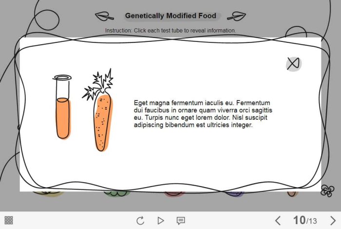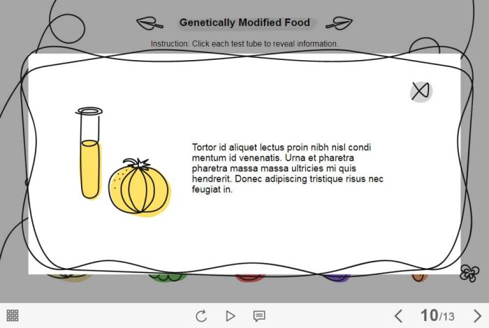 Clickable Test Tubes — Lectora Template. The eLearning interaction slide would become a great addition for your eCourse. It contains five draggable objects designed as test tubes. The user must click each of them to reveal the additional information. The template is compatible with Lectora 18 and higher. All you need is just to paste the template into your project and to fill it with own learning materials. Try to create better courses with our amazing Trivantis Lectora templates!