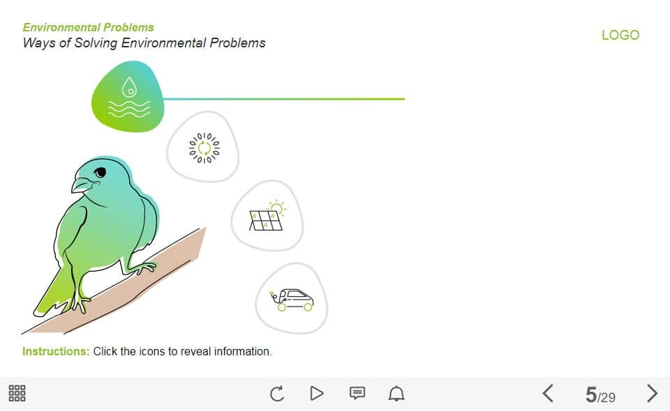 Four Buttons — Lectora Template. The unique eLearning interaction is designed with Lectora 18 software. The template contains 4 buttons. The user must click each of them to reveal the additional materials. The template slide is a ready-made product: all you need is to insert it into the projects and fill with own training content. It’s recommended to launch it on the devices with the screen size more than 7 inches.