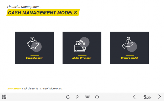 - Features: clickable visual objects designed for prudent use of slide space