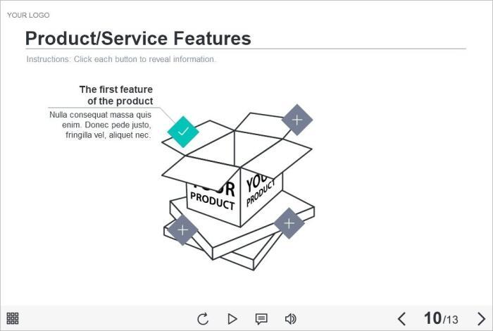 Four Clickable Markers — Lectora Template. The ready-made eLearning template is designed with Lectora Publisher 16 software. It contains four clickable markers placed over the cardboard box image. The user must click on them to reveal the learning materials. The template would be a great choice to create an astonishing e-course. All you need is just to insert the slide into the project and to fill it with your eLearning content.