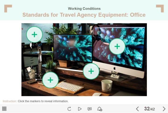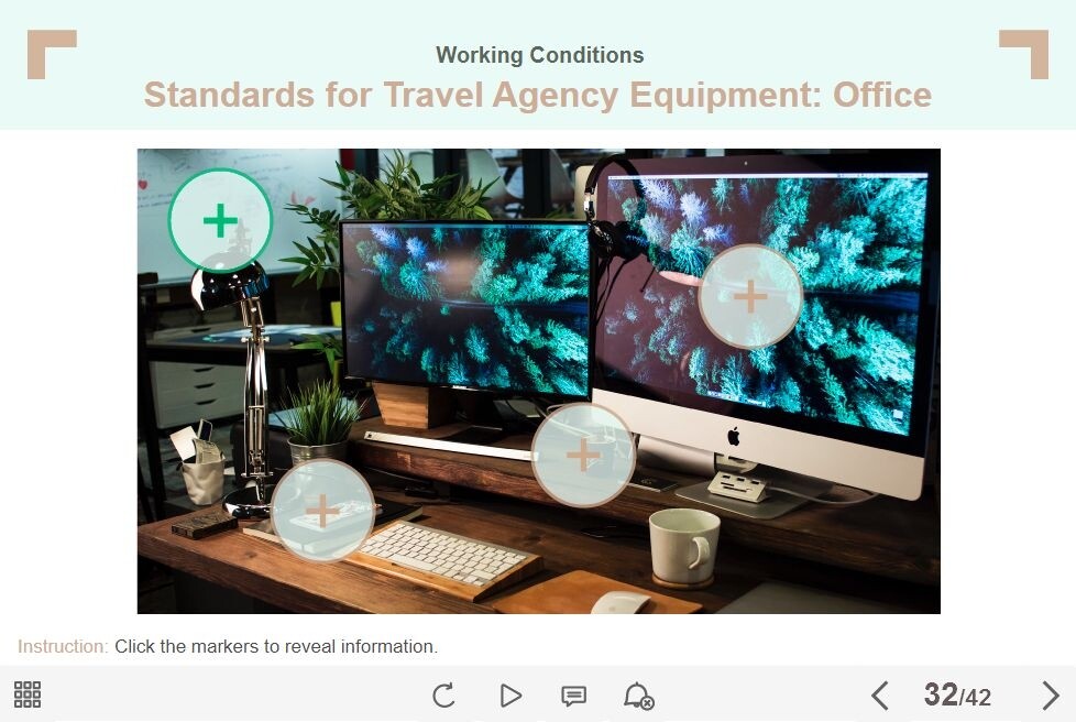 Click on Markers — Lectora Template. The template contains four clickable markers designed as the circles. The user must click on each of them to reveal the additional information in pop-ups. This Lectora interaction slide is a part of the Travel Industry Welcome Course Starter Template. It can be used for creating any type of eLearning courses with Lectora Publisher / Inspire 16 or higher. The template is a ready-made product that works well in PCs, laptops and tablets with screen size larger than 7 inches. Feel free to browse through our ready-made Lectora templates library and pick any ones to create own visual stories.