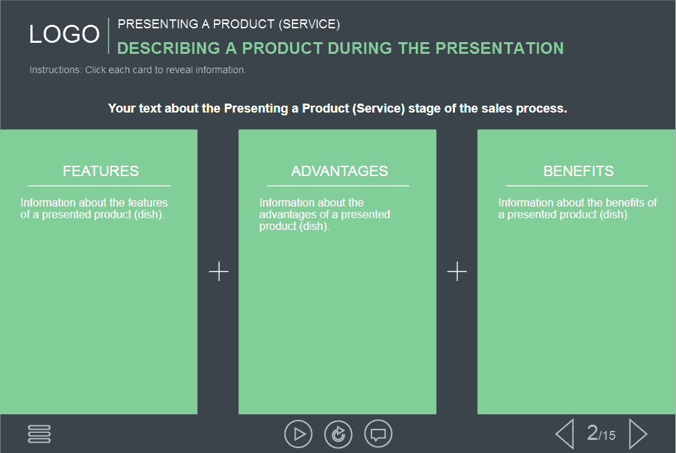 Flip Cards — Lectora Template. It contains 3 clickable objects invented to reveal the learning materials. The template would be a great addition to any eLearning project designed with Lectora Publisher authoring tool. All you need is just to insert the template into your training project and fill it with own training content. Feel free to browse through our Trivantis Lectora templates library and pick any item(s) you need to create a fascinating visual story.