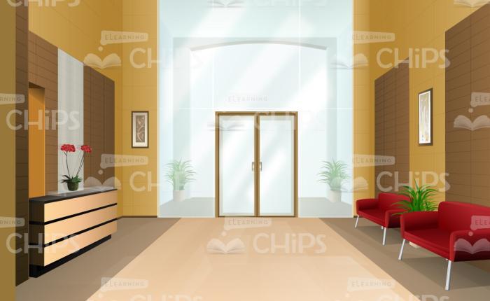 Bright and spacious hallway background, perfectly suits for various web-related projects. Large glass door welcomes to a comfort lounge. Created in a light, friendly manner, it would be an ideal option for a memorable e-learning courses. Purchase it now and start making your own illustrative program.