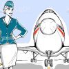 Runway Vector Background. A pretty stewardess is posing against the backdrop of the aircraft. Highly professionally designed. Would be a perfect illustration for elearning projects on the aviation theme. Available in two formats: raster (.PNG) and vector (.EPS). It can be customized with other chips. You can also modify the vector image according to your requirements. Be sure that our high-quality artworks will become a great helper to make learners experience better!