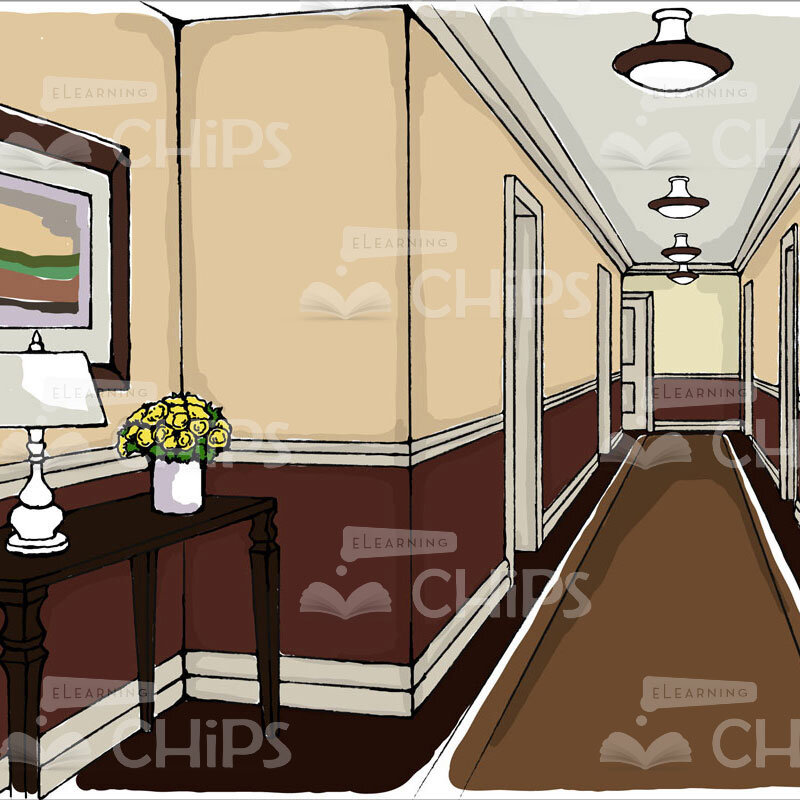 Hotel Corridor Vector Background. The interior is designed in a classic style. Highly professionally designed. Would be a perfect addition for your own elearning course or presentation. It’s a great illustration that can be used in any web or print related project. Available in two formats: raster (.PNG) and vector (.EPS). Can be customized with other chips. You can modify the vector one according to your requirements. Be sure that our high-quality artworks will become a great helper to make learners experience better!