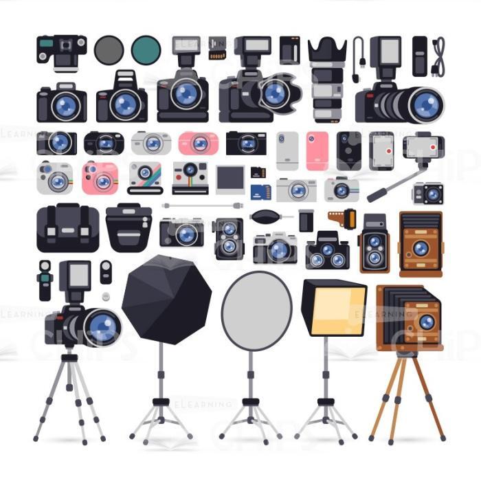 Professional Photographer Equipment Vector Object Set. It contains various cameras, lenses, tripods, equipment for setting the light, etc. This artwork can be used as an illustration in training courses, advertisements, marketing projects, etc. It is available in raster (.PNG) and vector (.EPS) formats. It’s possible to change any details in a vector file according to your own needs. We’ve collected a large vector graphic library especially for eLearning designers and course developers. Feel free to browse through it and pick any item(s) you need to create an amazing visual story.